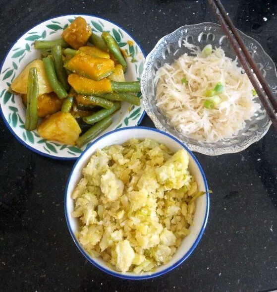 7:再配上一道熱菜,土豆,窩瓜,豆角燴在一起。一道凉菜,凉拌松根丝。一顿地道的农家饭就ok啦