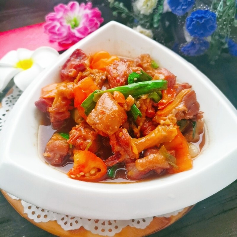 腊鸭腿2只;红辣椒一个;蒜苗适量;
