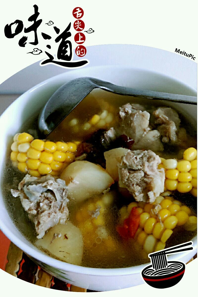2:加玉米切段,马蹄少许,红枣枸杞少许,葱段(大葱白),姜片,蒜瓣一起煲25分钟