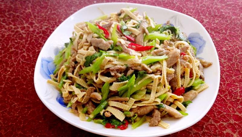 6:简单又好吃的芹菜香干炒肉丝,一次一盘!