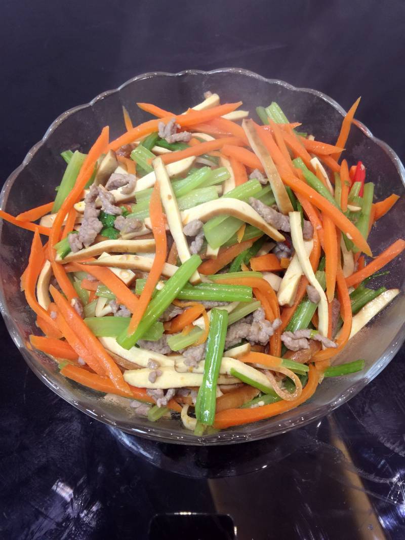 简单家常菜,没什么技艺,建议香芹切细条一些,比较入味