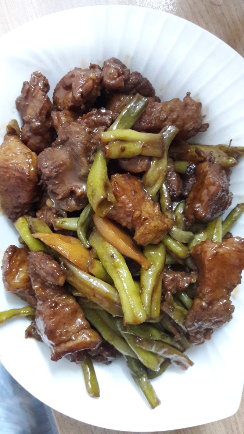 1:准备猪肉一块,洗净切片;豆角洗净去筋,掰成小段.喜欢吃肥肉的话准备的猪肉可以肥一些.