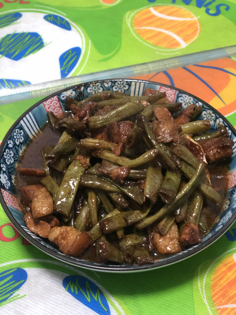 7:期间注意翻一下,好让豆角均匀入味。豆角炖软后收汁出锅。