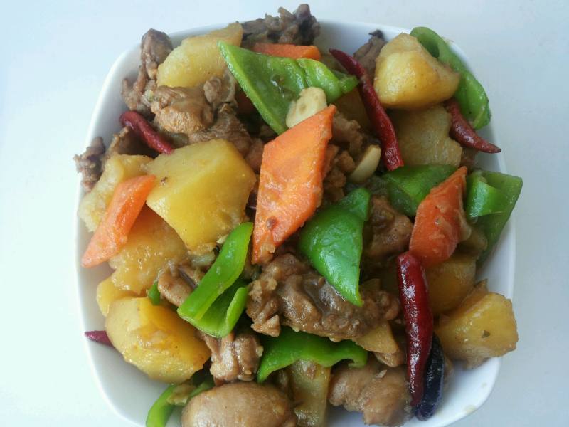鸡腿1000克;土豆500克;尖椒适量;胡萝卜适量;干红尖椒适量;