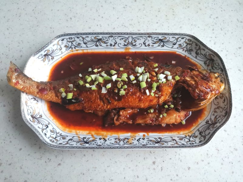 10:黄花鱼盛入盘中,淋上汤汁,撒葱花即可。