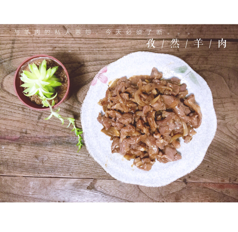 1:原料:羊肉切块,洋葱切丝,蚝油,孜然粒
