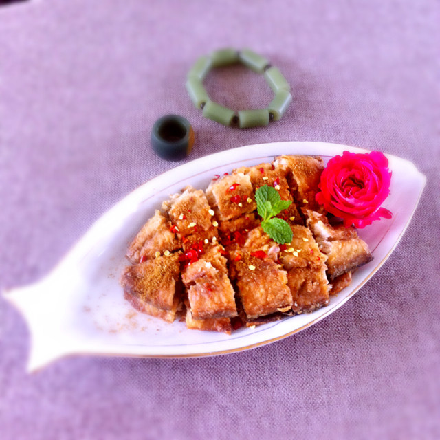 3:可以趁热撒点椒盐,也可以把椒盐放在盘子的一侧,想吃的时候随时蘸取。