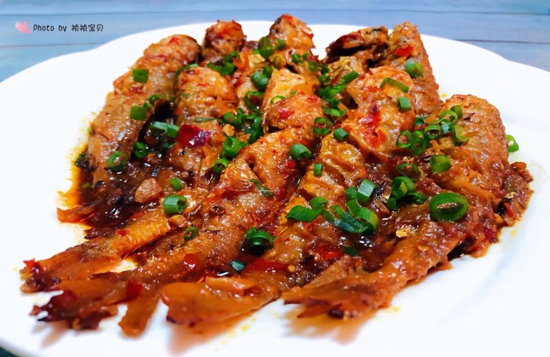 10:黄花鱼盛入盘中,淋上汤汁,撒葱花即可。