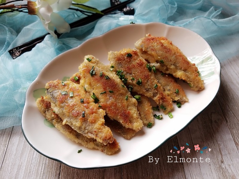 7:锅里放油烧热,把裹上淀粉的鱼一个个放锅里煎至两面金黄。