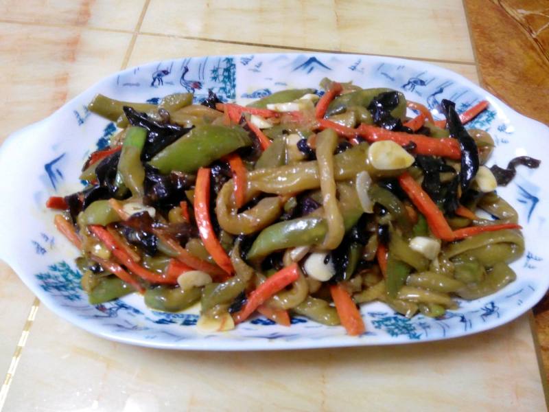绿茄子适量;胡萝卜适量;黑木耳适量;