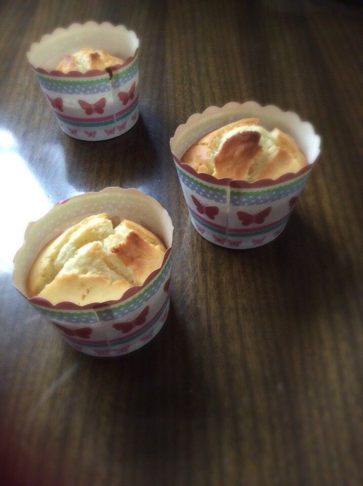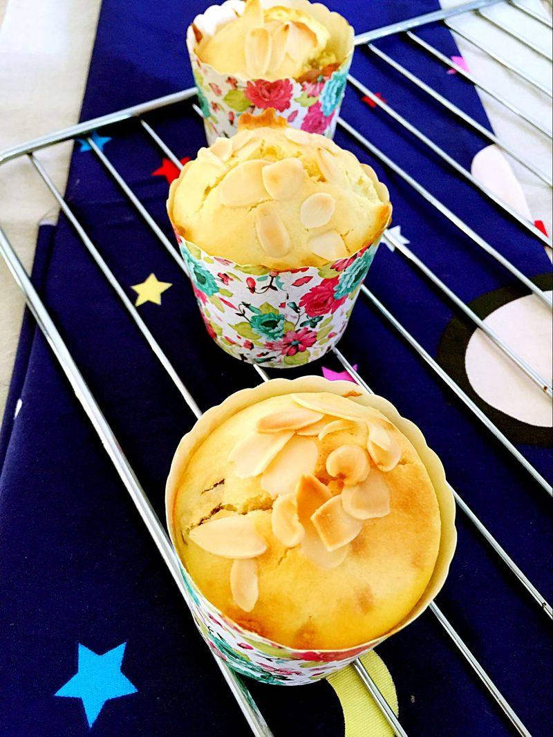 5:把拌好的面糊装入裱花袋,挤入纸杯模具7、8分满。(我偷懒直接倒进了纸杯)。然后放入预热好180度的烤箱,烤20分钟,直到表面完全膨胀,并呈现棕红色即可出炉。