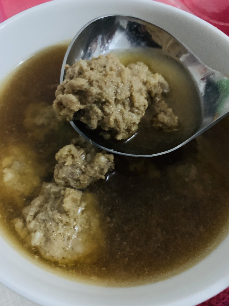 2:锅内放半锅水烧开,开始手挤丸子了,都挤下去后,把浮沫撇出,然后给汤调味加盐,酱油,老抽,黑胡椒粉(现磨),盖盖小火煮10分钟就可以了。