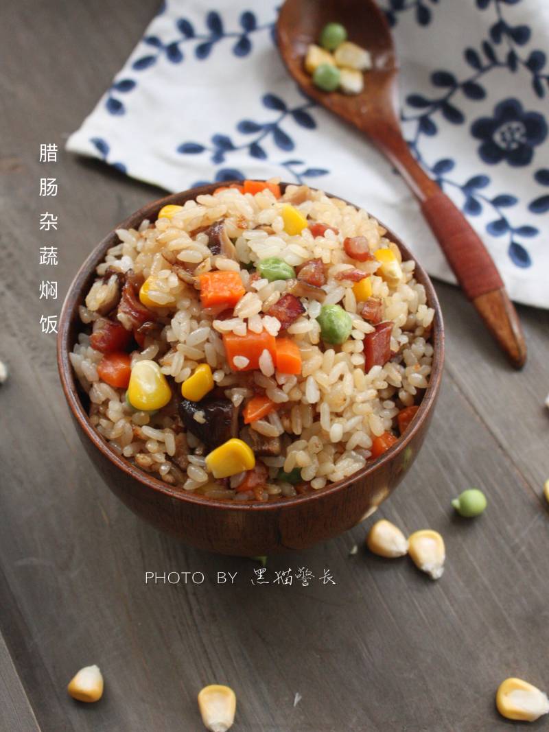 时蔬菜丁可以随自己喜好任意变化。加水量根据实际情况酌情添加。焖煮时保持中小火,以防底层焦糊而米粒不熟,出现夹生饭。