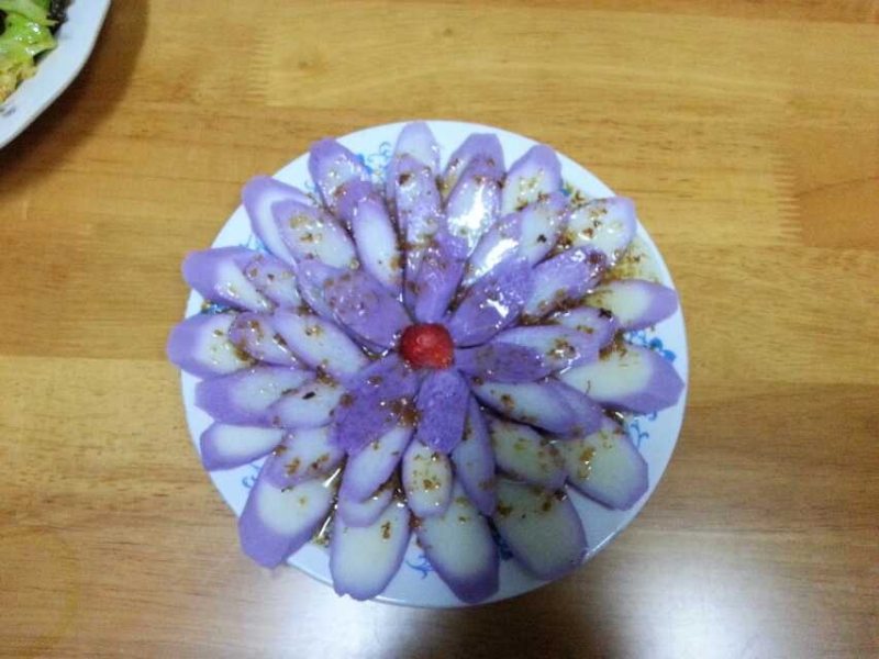 1:紫山药去皮后洗净,上笼蒸30分钟左右
