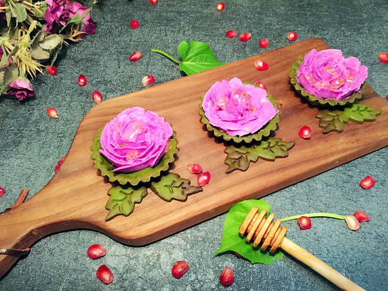 17:然后用紫山药泥裱花,填满整个挞皮即可