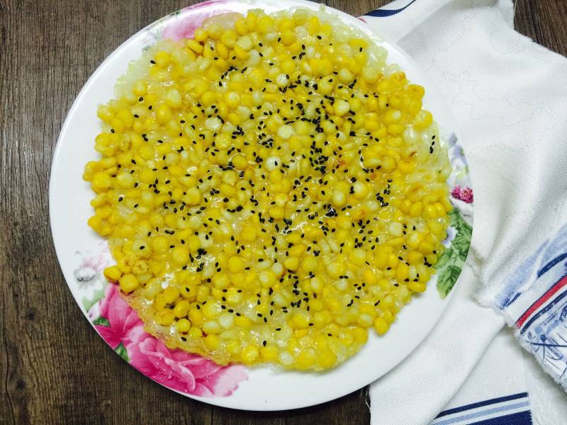 白糖少许;芝麻少许;玉米粒若干;油少许;