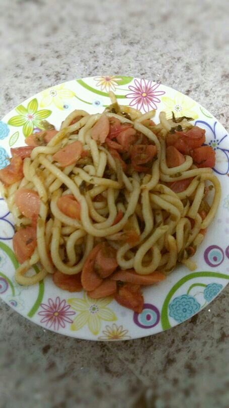 乌东面1袋;番茄1个;火腿肠1个;