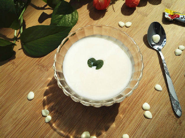 4:美味健康杏仁露就可以享用了,(剩下的杏仁渣可以和燕麦一起煮成燕麦片,如果没有加牛奶而是加清水做的杏仁露还可以做成杏仁粉,烘焙也经常会用到)