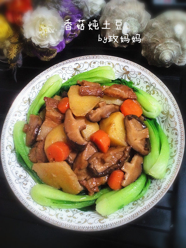 香菇6个;土豆2个;胡萝卜适量;猪肉150克;油菜150克;