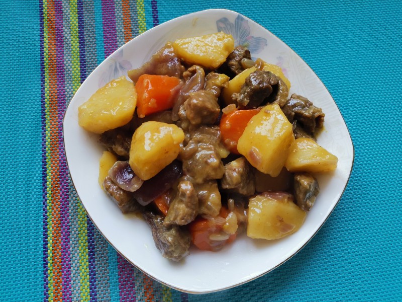 牛肉先用电压力锅炖制后,再与土豆、胡萝卜一起烧焖,可保证牛肉软烂适口。