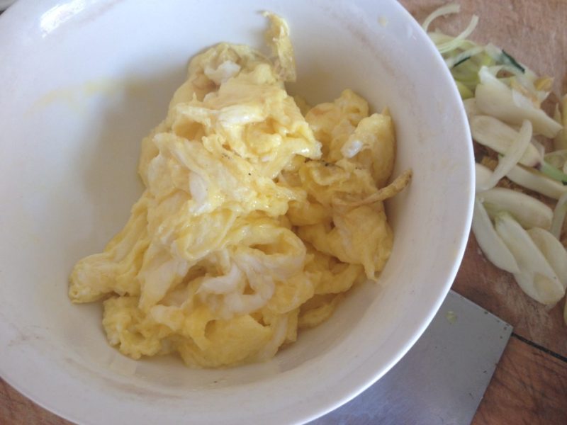 4:鸡蛋打散用油炒熟捞起