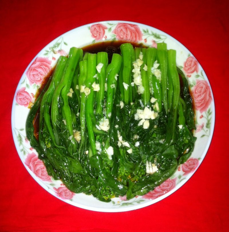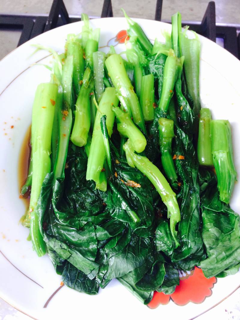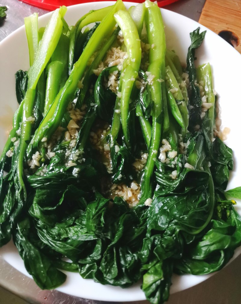 5:重新起锅烧酱汁:豆豉油/生抽,蒜盐(或者直接蒜 盐),一勺骨头汤(刚好有炖骨头汤,所以增加鲜美)