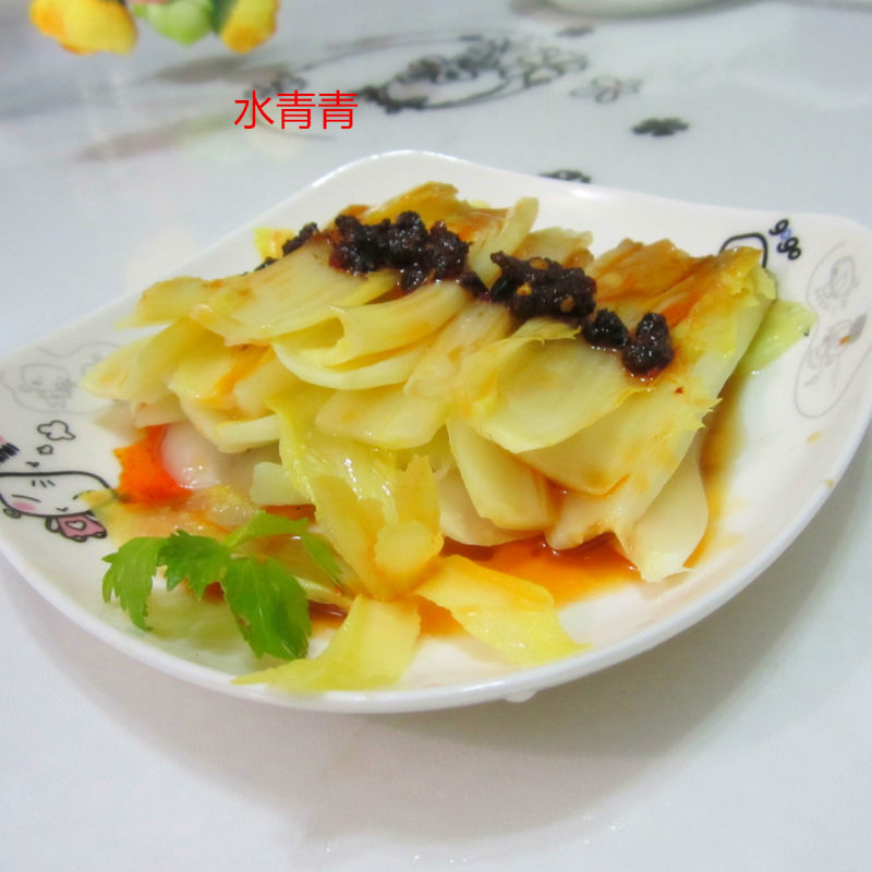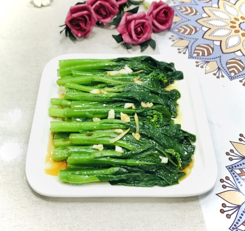 1:菜心洗净绰水,水里放几滴油一勺盐,捞出来别忘了过冷水