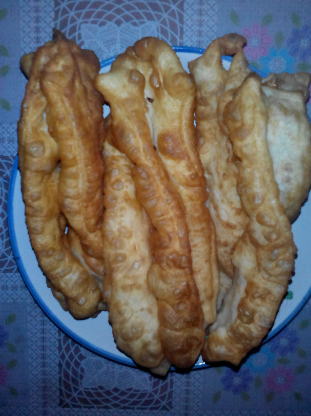 6:油条下锅后定型好就开始。上下翻动。金黄即可。