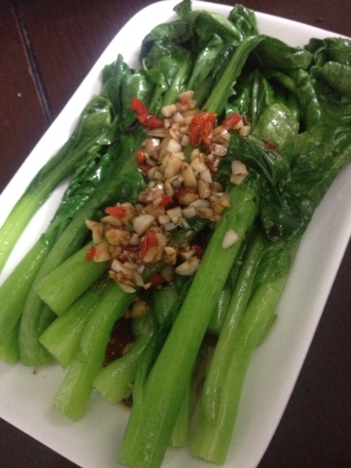 5:重新起锅烧酱汁:豆豉油/生抽,蒜盐(或者直接蒜 盐),一勺骨头汤(刚好有炖骨头汤,所以增加鲜美)