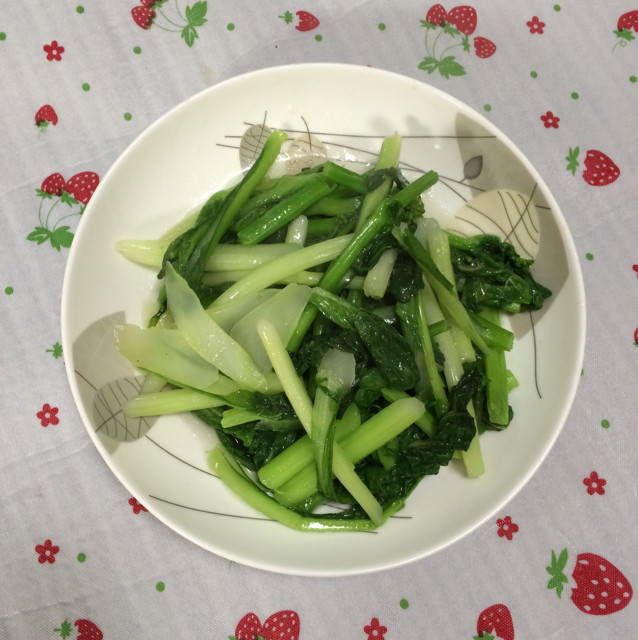 1:菜心洗净绰水,水里放几滴油一勺盐,捞出来别忘了过冷水