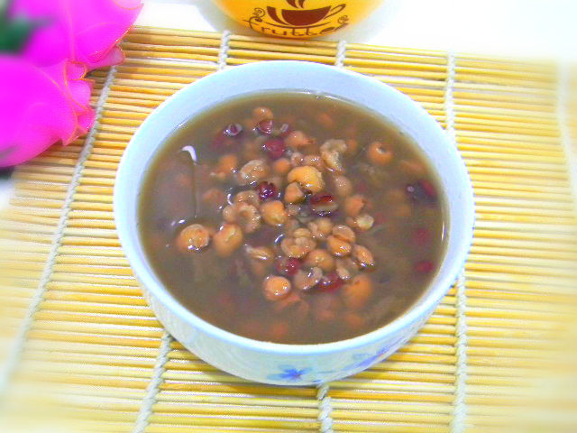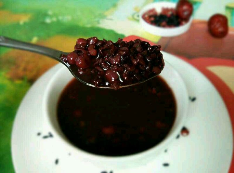 黑米50g;红豆50g;红枣6颗;花生米20g;红糖适量;