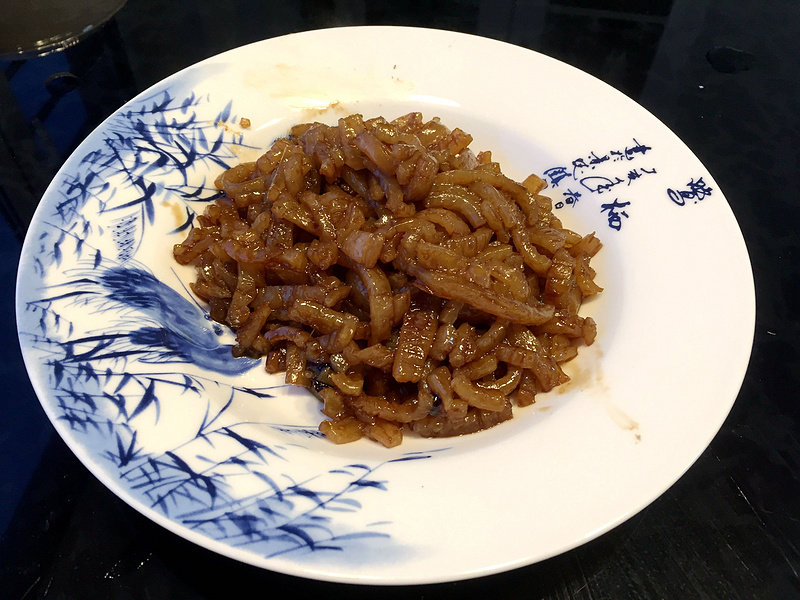 5:肉皮处理干净后切成丝备用;