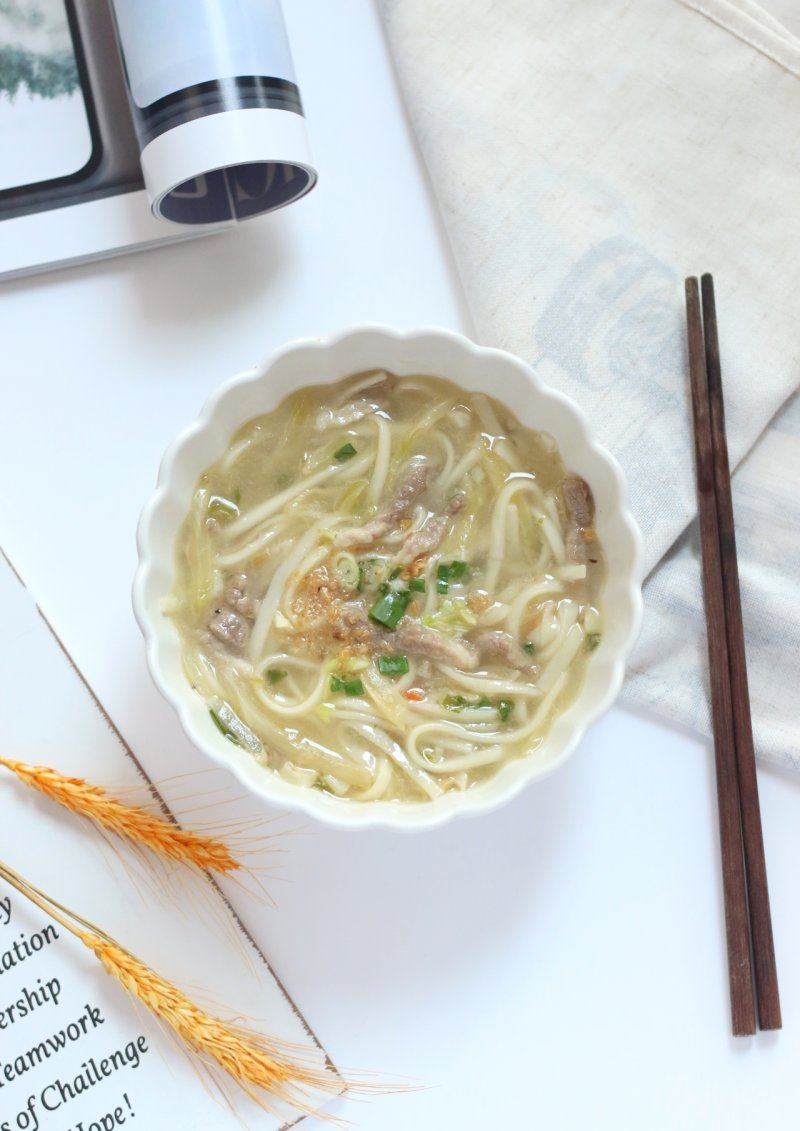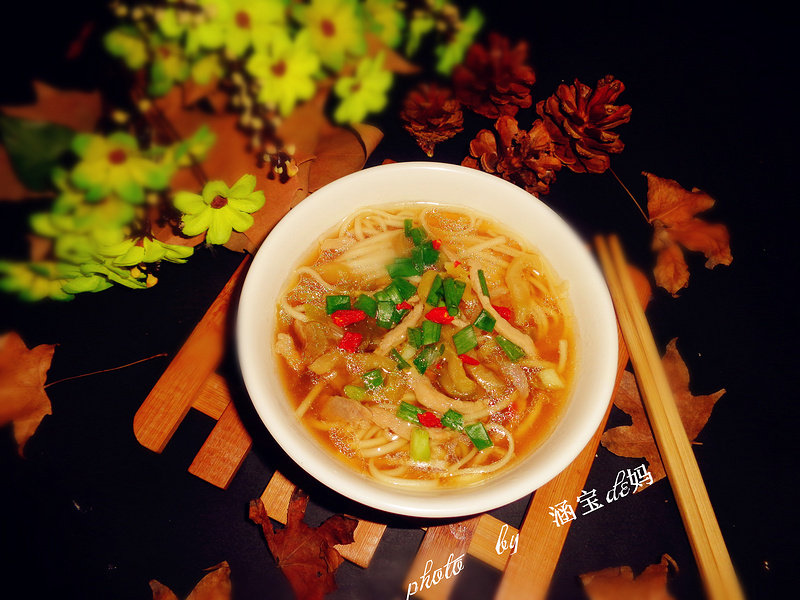 11:出锅后撒香葱一碗香喷喷的肉丝面就好啦