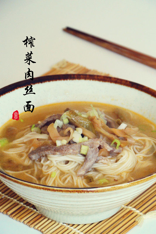 我这是懒人版做法,用的干面条。也可以将榨菜肉丝炒好后盛出,然后单独煮面条,再将榨菜肉丝浇在面条上。程序先后的问题大家自行操作吧。呵呵