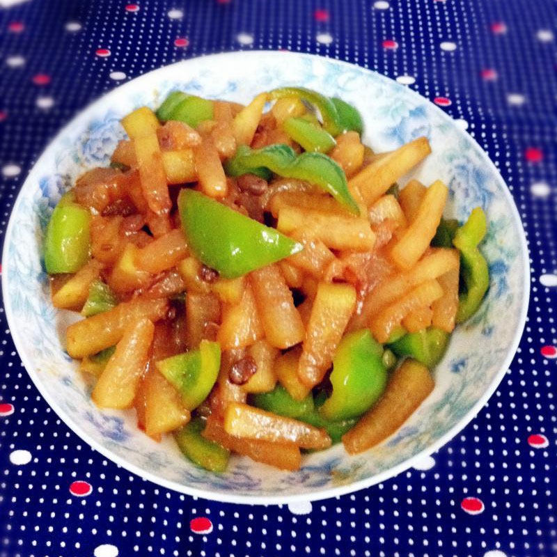 4:炒锅倒油爆香葱花接着倒入冬瓜条翻炒