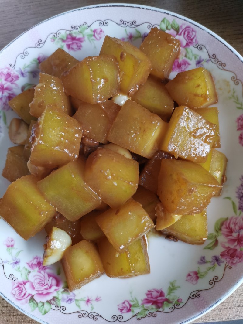冬瓜块切小一点就更好入味些,油可稍多放一点,酱油可用颜色稍深的,这样烧出来的冬瓜才有酱赤油浓的感觉。做这道菜,冬瓜一定要烧熟透,就是到用锅铲可以轻易铲断的程度