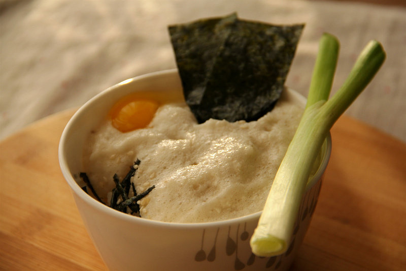 削山药皮的时候最好带着手套,不然手会痒,如果没有拌饭料,可以自己配,放一些紫菜碎、白芝麻、味增、盐,注意:饭一定要现煮的!现煮的!现煮的!(重要的事情说三遍)一定要很烫!
