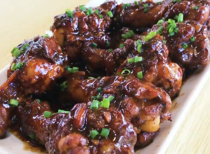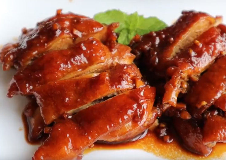 5:放入预热好的烤箱,华氏430度(摄氏220度)烤30分钟,中途刷一遍腌汁。