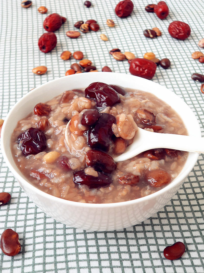 红薏仁适量;红枣适量;红豆适量;红莲子适量;红薯适量;红米适量;