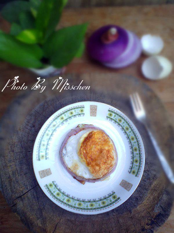 3:平底锅放入适量油开小火把洋葱圈摆进去打入鸭蛋(俺家这个平底锅不是很平导致鸭蛋打进去部分蛋蛋清流出来,我煎荷包蛋不习惯放盐,需要的可以撒少许盐上去,如果煎太阳蛋的话等蛋定型了在蛋黄上滴几滴热水可以使煎好的蛋更嫩,这个是我以前在网上看到的,自己没实验过)