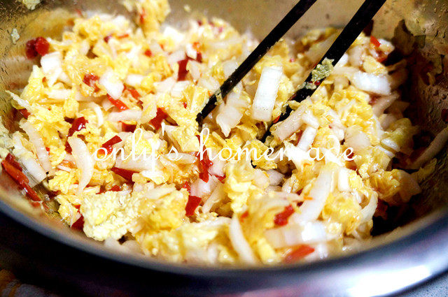 5:辣椒酱炒匀后,加人盐,生抽调味即可。