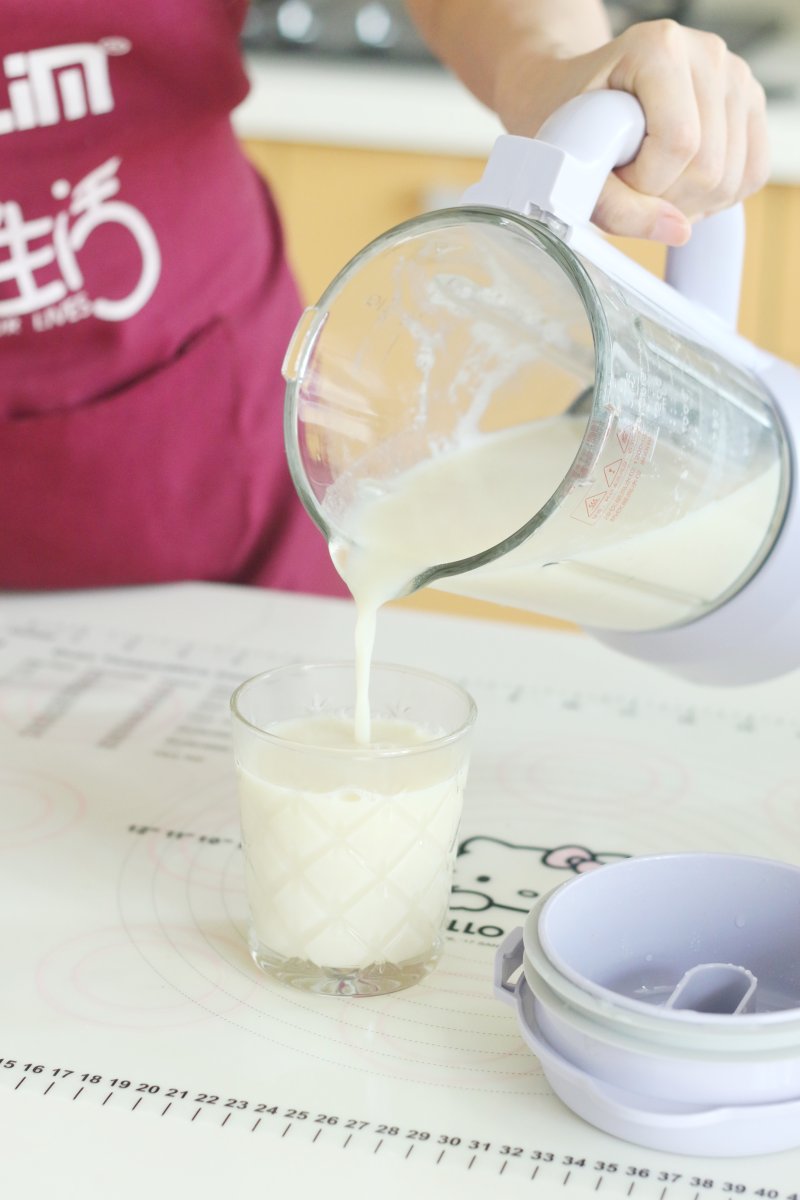 4:到豆浆机蜂鸣响后。过滤豆渣。