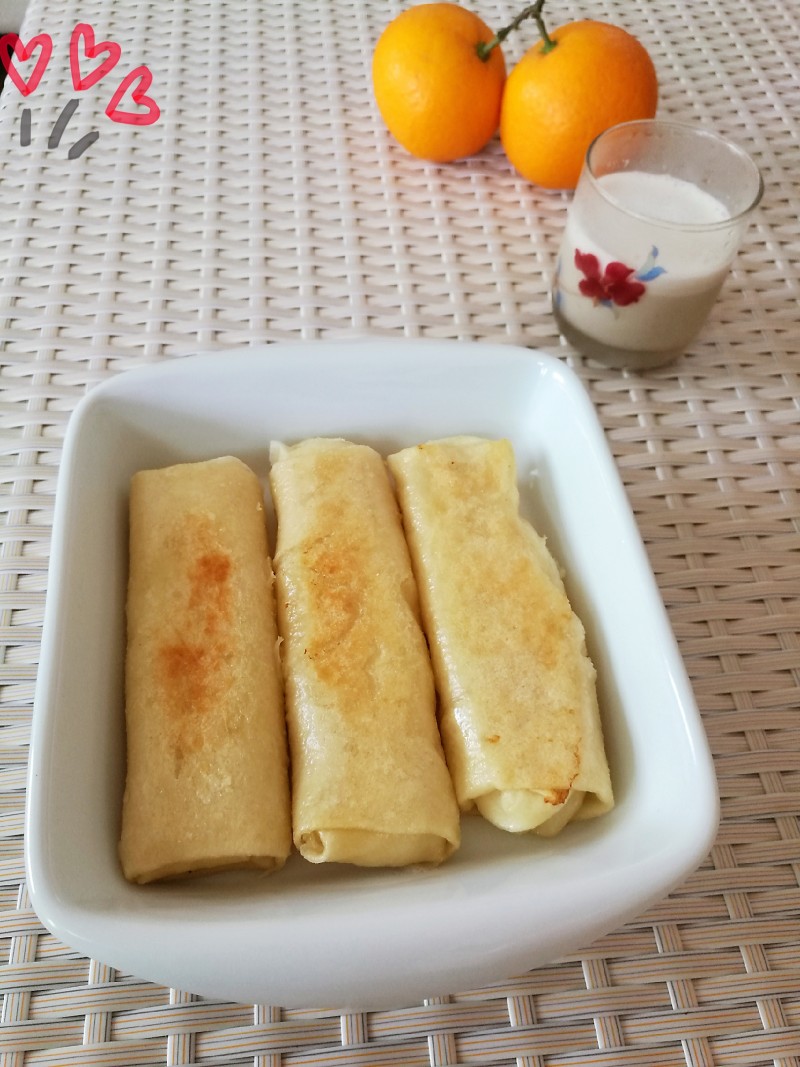 7:需要时,将铁棍山药卷从冰箱拿出来,放电饼铛中煎至两面微微焦黄即可。
