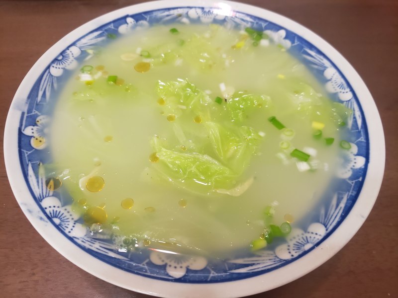 4:水开后,放入白菜和虾皮,中小火煮10分钟左右,至汤变浑,加盐和鸡精调味即可。