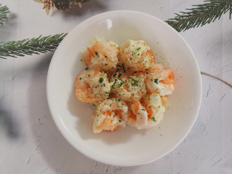 5:把芥末沙拉酱跟虾球拌匀即可。