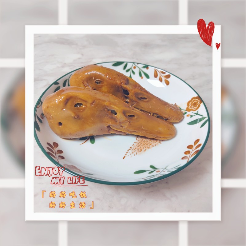 5:放入鸭头煮沸10分钟,加入红烧肉调料粉~冰糖~鸡精调味~煮沸5分钟出锅。