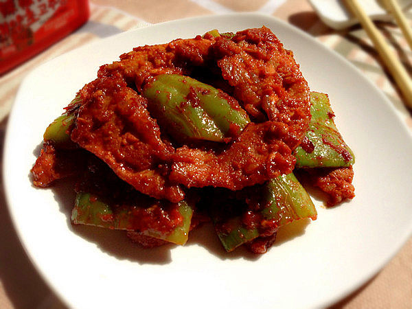 9:豆皮切条切方块都可以看个人喜好喜欢吃尖椒的可以考虑烤熟蘸酱吃很美味的