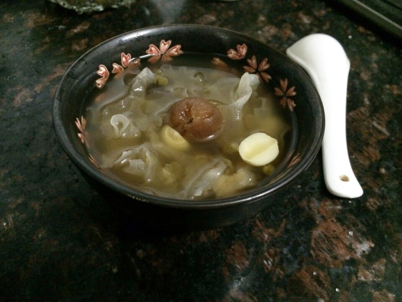绿豆适量;银耳适量;百合适量;莲子适量;桂圆肉适量;