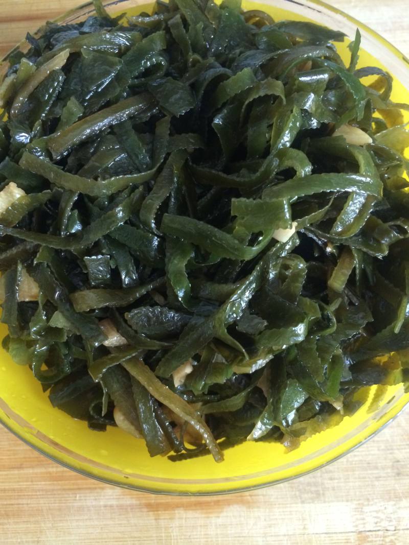 1:海带丝用水煮过,因为是干海带丝,我就多煮了一会儿,大约有10分钟,然后捞出用凉开水泡下