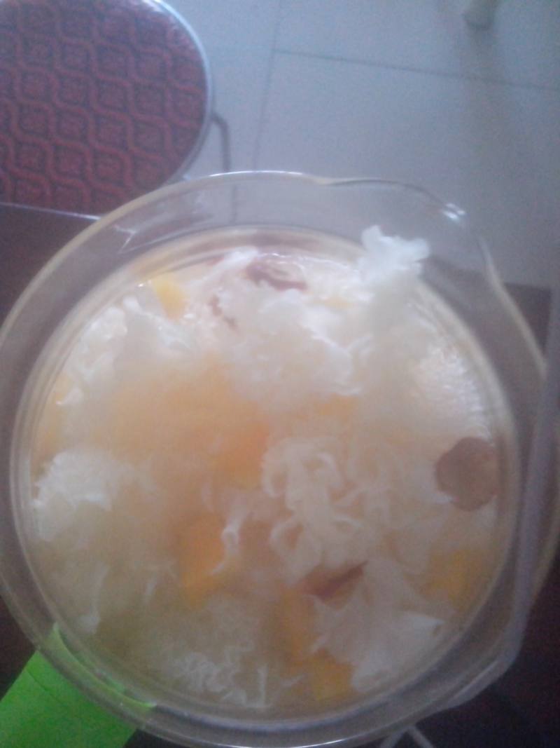 4:银耳泡发后撕小朵,加足量的水,入电炖锅煮一小时,用锅煮的话就烧开后转小火煮一小时
